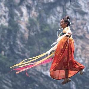 8月20日,游客在湖北省恩施州建始縣地心谷景區游玩(無(wú)人機照片)。