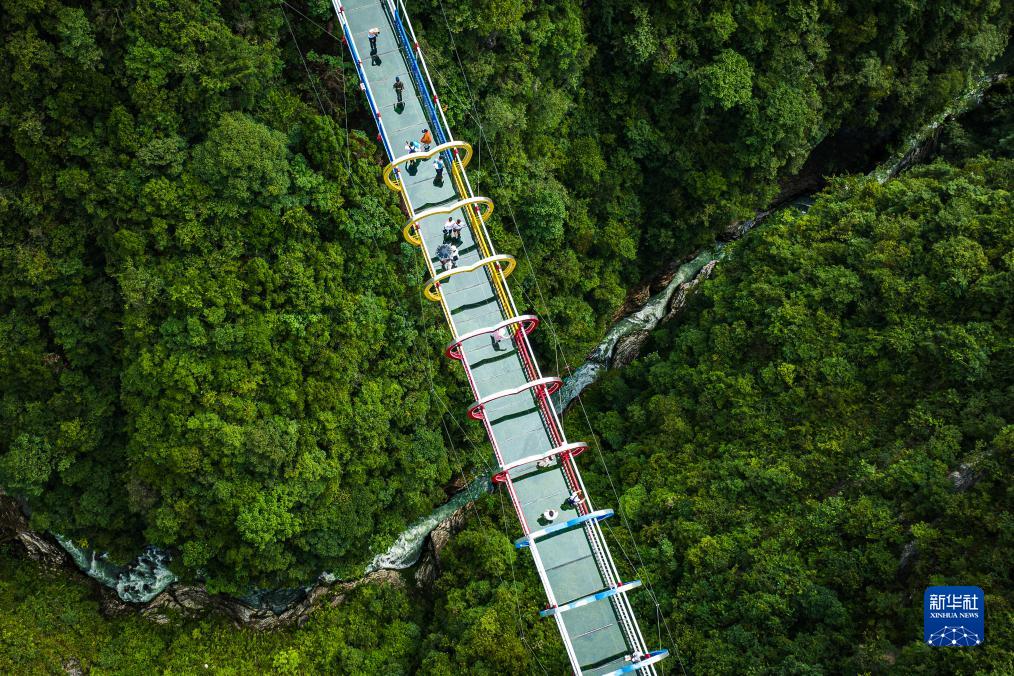 8月20日,游客在湖北省恩施州建始縣地心谷景區游玩(無(wú)人機照片)。