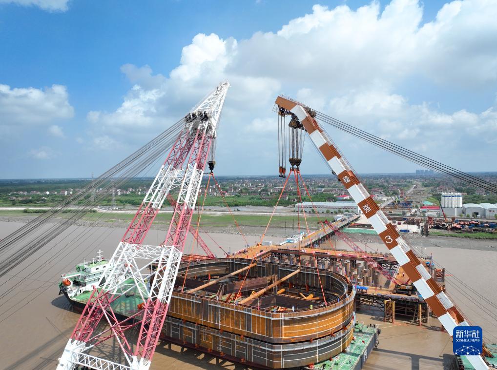 崇啟公鐵長(cháng)江大橋4號主墩首節鋼圍堰完成安裝