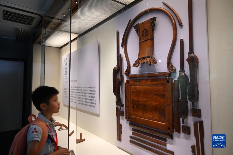 8月21日,觀(guān)眾參觀(guān)展出的京作皇宮椅部件。