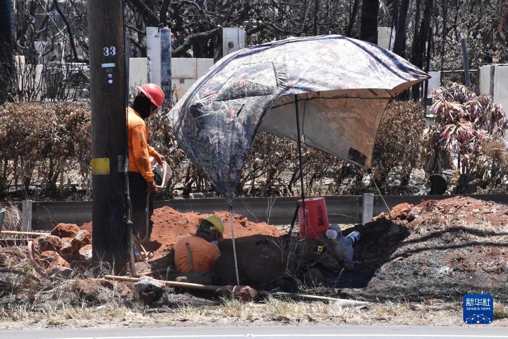 8月20日,工人在美國夏威夷州拉海納修復電力系統。