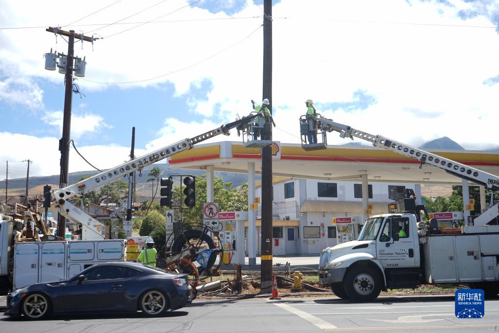 8月20日,工人在美國夏威夷州拉海納修復電力系統。