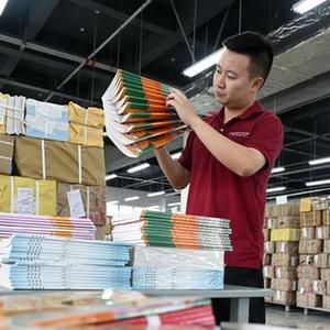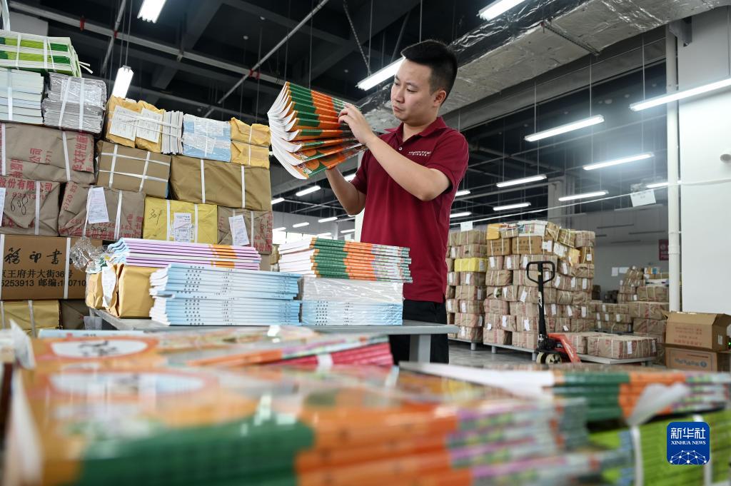 8月21日,四川新華文軒內江市東興分公司工作人員在教材倉庫內清點(diǎn)整理新學(xué)期教材。