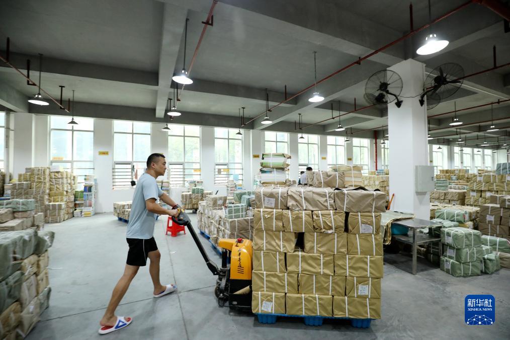 8月21日,在湖南省資興市新華書(shū)店教材倉庫內,工作人員在搬運教材。