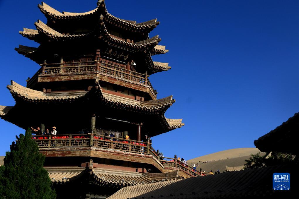初秋時(shí)節,甘肅省敦煌市碧空如洗,鳴沙山月牙泉景區景色如畫(huà),引人入勝。