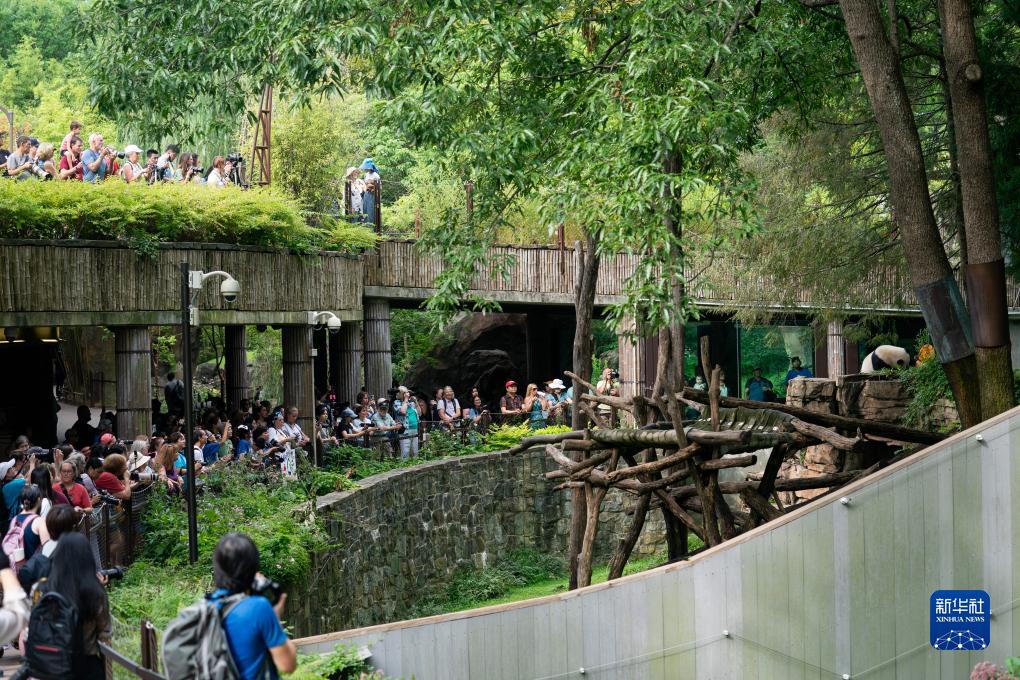 8月21日,游客在美國首都華盛頓史密森學(xué)會(huì )國家動(dòng)物園觀(guān)看大熊貓幼崽“小奇跡”過(guò)生日。