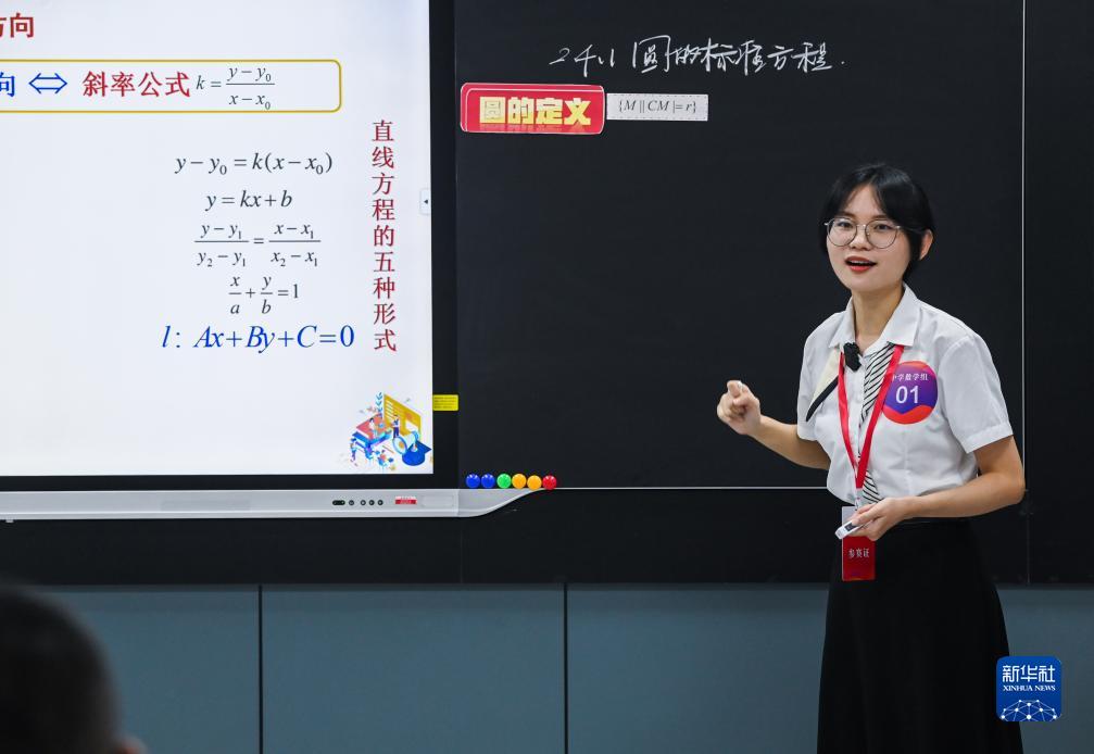 8月22日,中學(xué)數學(xué)組的一名教師在進(jìn)行教學(xué)展示。