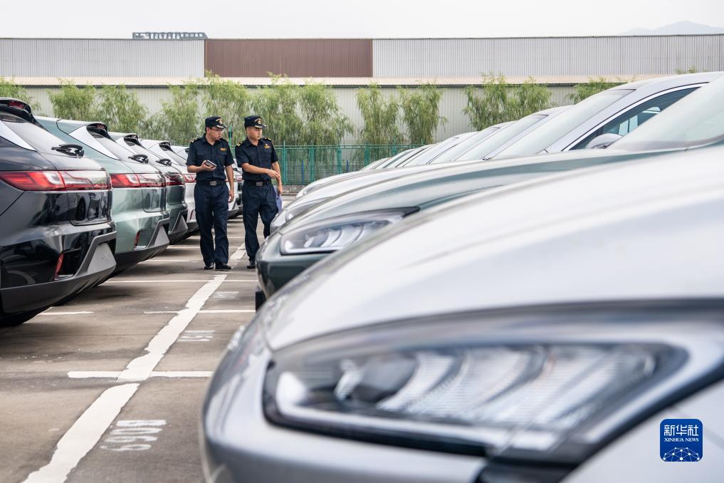 8月22日,海關(guān)人員在位于重慶市沙坪壩區的重慶鐵路口岸對出口車(chē)輛進(jìn)行檢查檢驗。