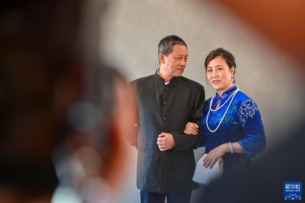 8月22日,一對夫婦在攝影師的指導下拍照。