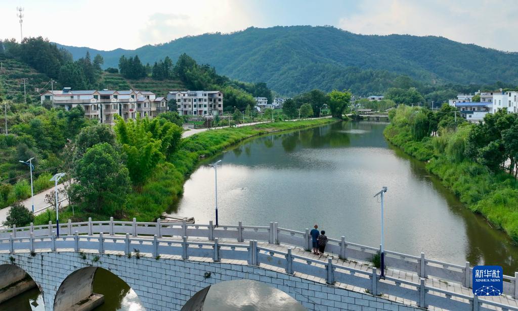8月17日,鄭其輝陪伴妻子散步(無(wú)人機照片)。