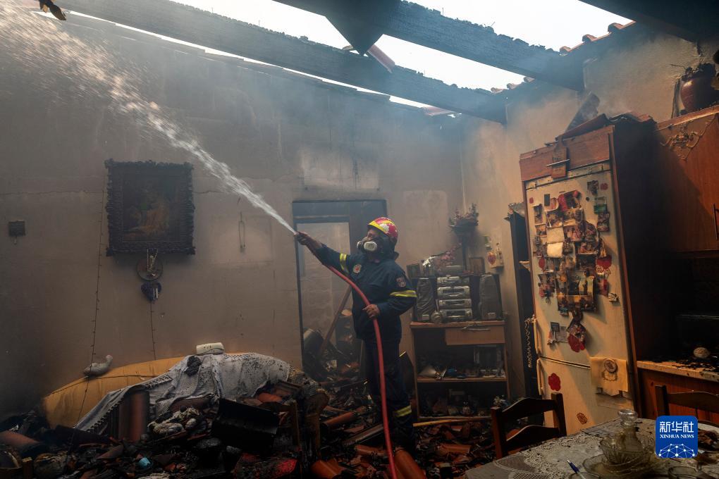 8月22日,消防員在希臘首都雅典附近的查西亞村滅火。