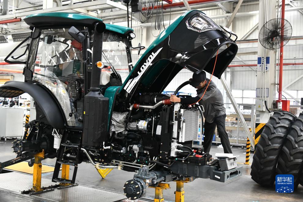 8月22日,在位于山東省濰坊市坊子區的濰柴雷沃智慧農業(yè)科技股份有限公司,工人在車(chē)間組裝生產(chǎn)農機設備。