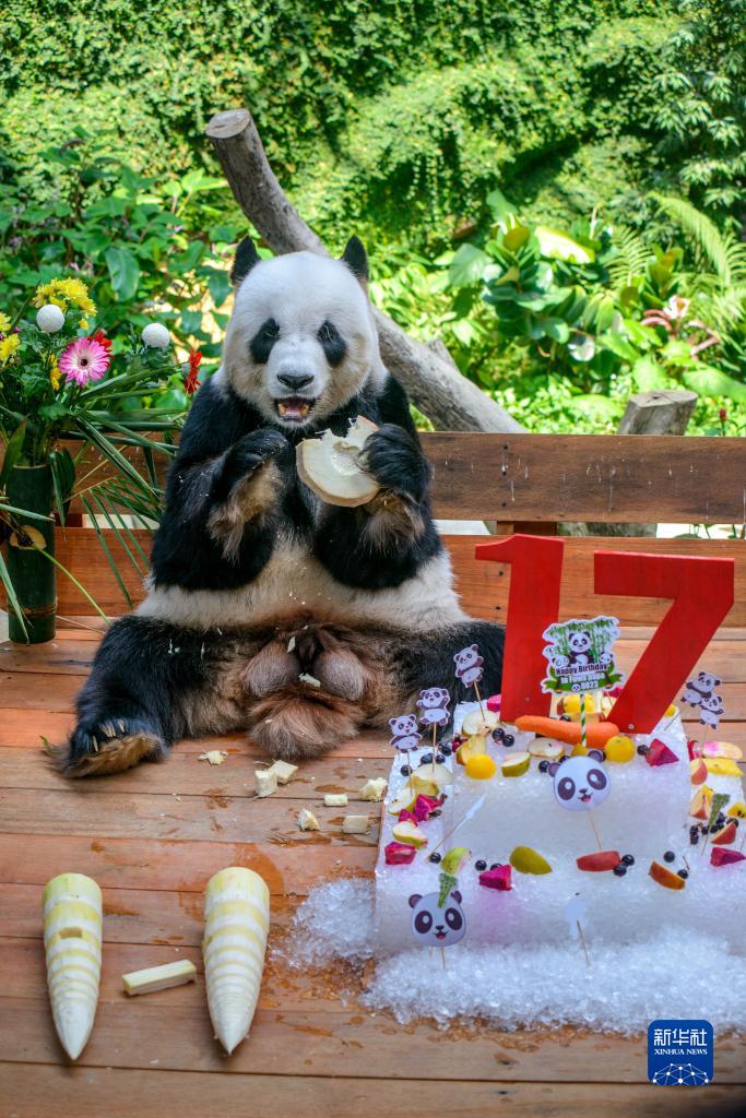 在馬來(lái)西亞國家動(dòng)物園大熊貓保護中心內,中國旅馬大熊貓夫婦“興興”和“靚靚”23日迎來(lái)了17歲生日。