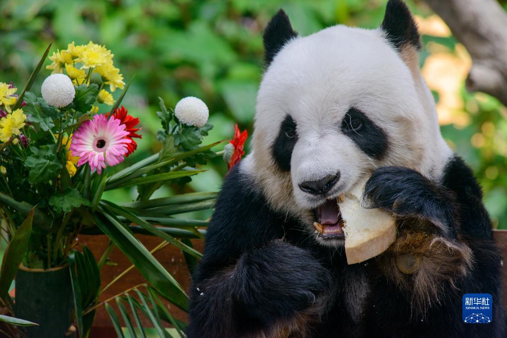 8月23日,在馬來(lái)西亞吉隆坡附近的馬來(lái)西亞國家動(dòng)物園,大熊貓“興興”享用生日大餐。