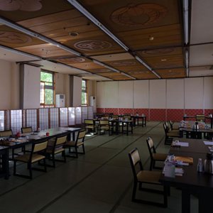 這是8月23日在日本福島縣磐城市拍攝的一家酒店空曠的餐廳。