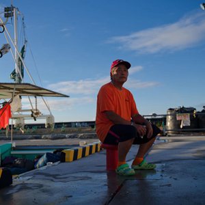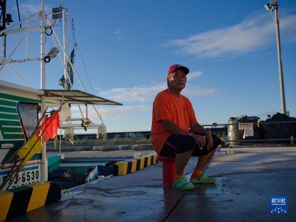 8月23日,打漁歸來(lái)的小野春雄坐在日本福島縣新地町的漁港。