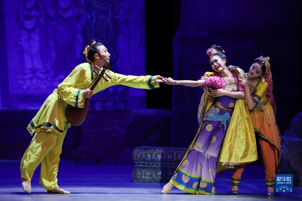 近日,中國經(jīng)典舞劇《絲路花雨》在甘肅省蘭州市的甘肅黃河劇院常態(tài)化駐場(chǎng)演出,甘肅省歌舞劇院的演員們演繹了優(yōu)美動(dòng)人的敦煌壁畫(huà)舞姿。