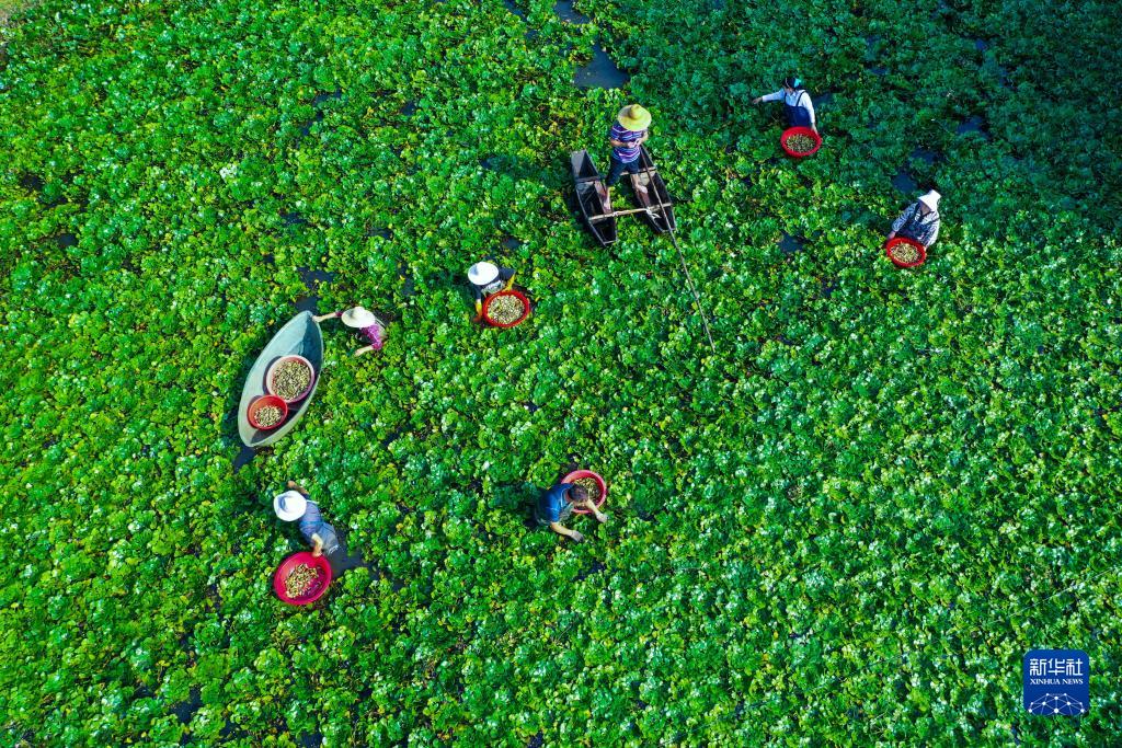 眼下,各地菱角陸續進(jìn)入采摘期,農民加緊采摘,確保新鮮的菱角及時(shí)供應市場(chǎng)。