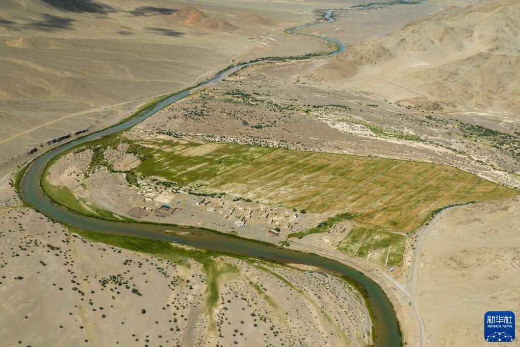 俯瞰布貢村青稞田(8月24日攝,無(wú)人機照片)。