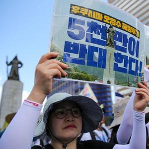 當日,韓國最大在野黨共同民主黨成員和眾多市民聚集在首爾光化門(mén)廣場(chǎng),手舉標語(yǔ)進(jìn)行示威游行,抗議日本核污染水排海。日本政府24日啟動(dòng)福島核污染水排海,這一決定遭到國際社會(huì )的批評和反對。