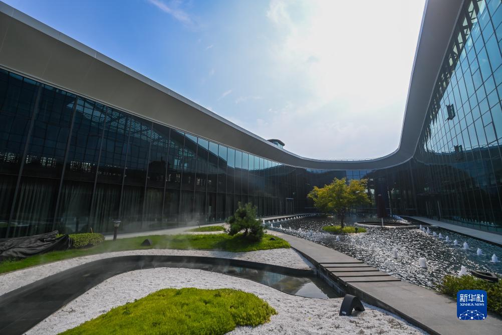 這是8月24日拍攝的杭州富陽(yáng)水上運動(dòng)中心的中庭花園,花園里種植的植物使用回收的雨水進(jìn)行澆灌。新華社記者 徐昱 攝
