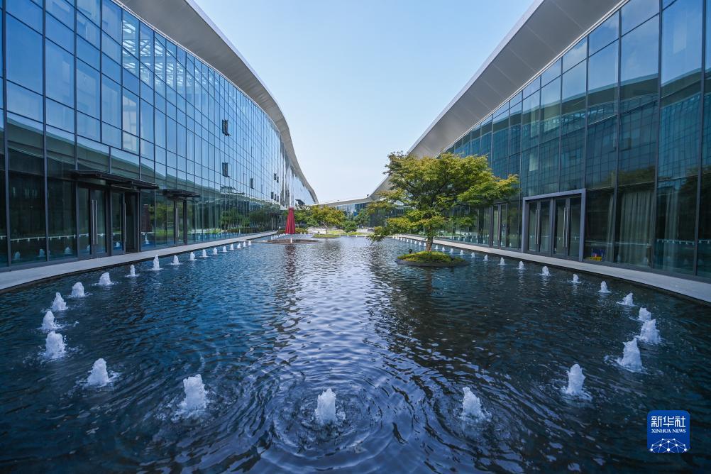 這是8月24日拍攝的杭州富陽(yáng)水上運動(dòng)中心的中庭花園,水池中的水來(lái)自于循環(huán)利用的雨水。新華社記者 徐昱 攝
