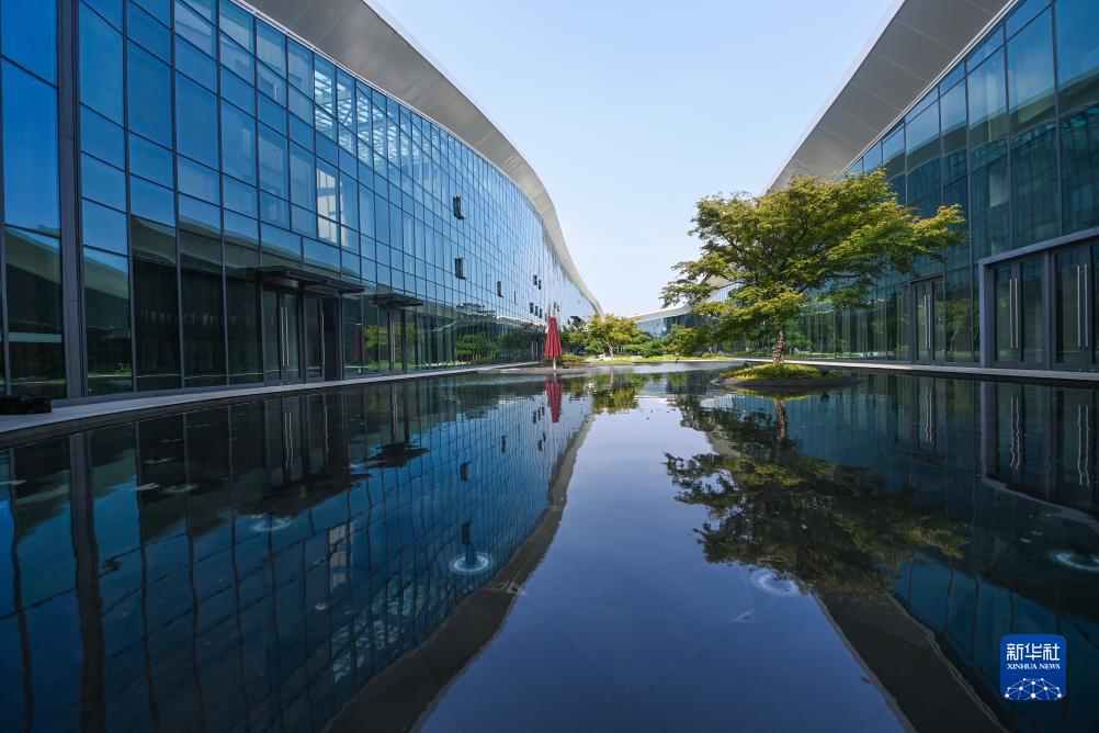 這是8月24日拍攝的杭州富陽(yáng)水上運動(dòng)中心的中庭花園,水池中的水來(lái)自于循環(huán)利用的雨水。新華社記者 徐昱 攝