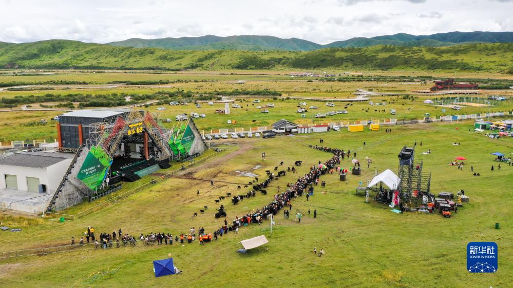這是8月25日在四川省阿壩藏族羌族自治州紅原縣雅克音樂(lè )牧場(chǎng)拍攝的牦牛產(chǎn)奶量比賽現場(chǎng)(無(wú)人機照片)。