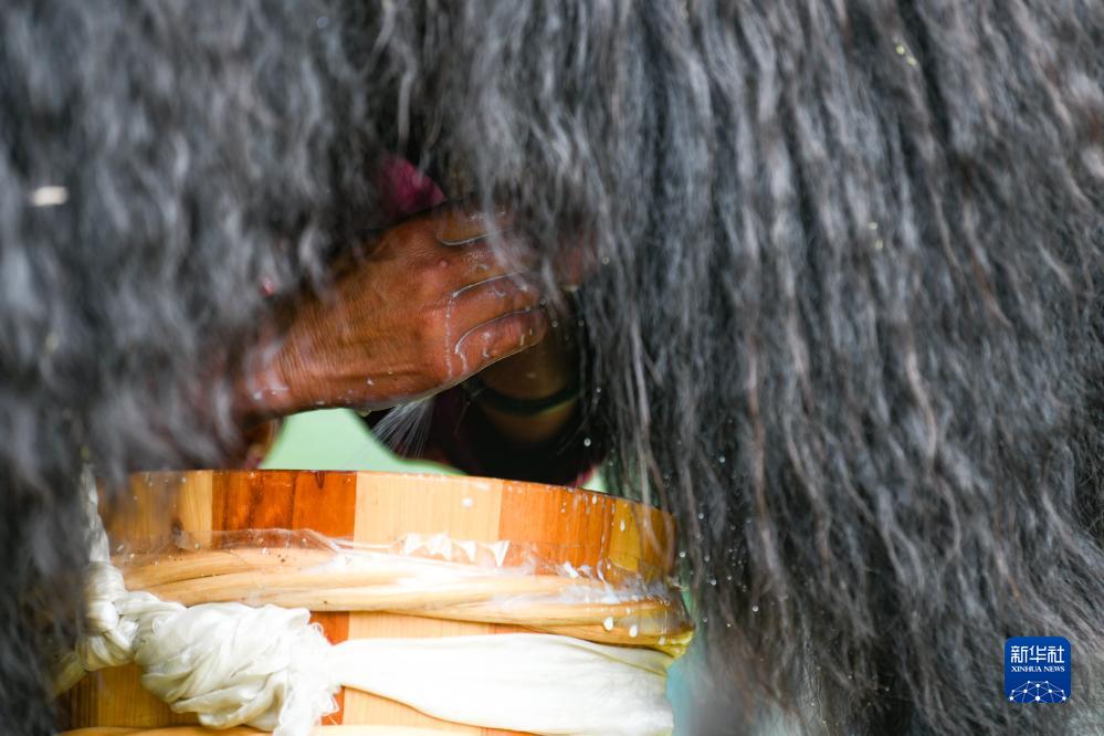 8月25日,在四川省阿壩藏族羌族自治州紅原縣雅克音樂(lè )牧場(chǎng),參賽者在擠牦牛奶。