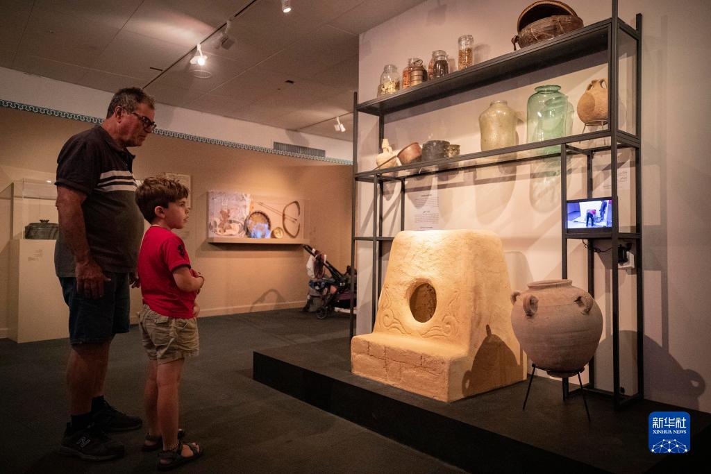 8月24日,人們在耶路撒冷舉行的古代阿拉伯世界飲食文化展上觀(guān)看古代烹飪工具。
