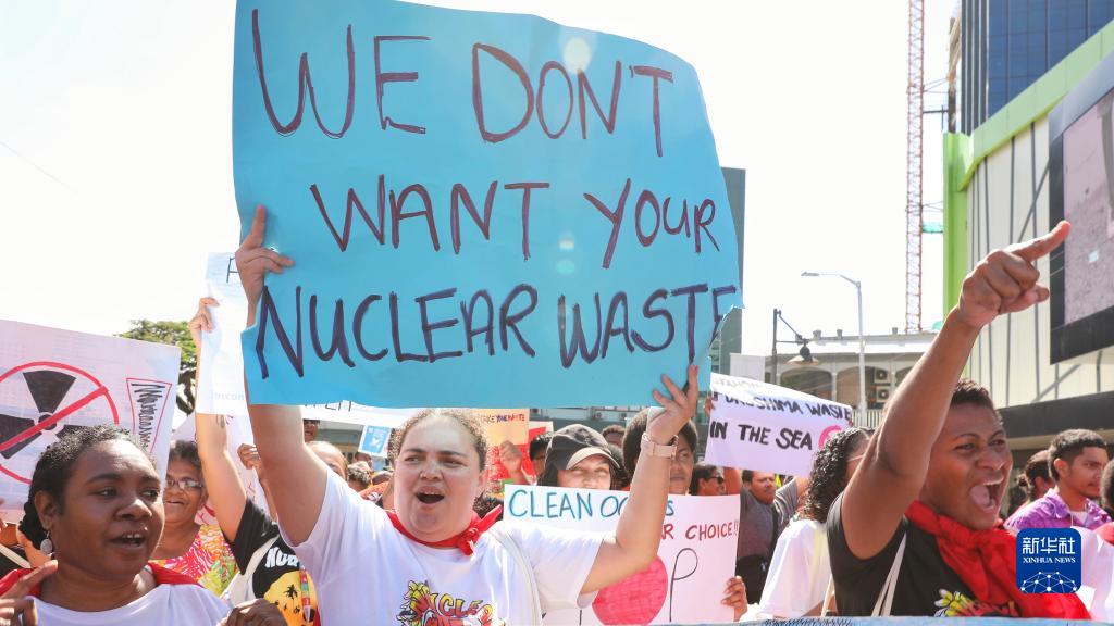 當日,數百名斐濟民眾沿街游行,強烈抗議日本政府啟動(dòng)福島第一核電站核污染水排海,呼吁國際社會(huì )采取行動(dòng)保護太平洋生態(tài)和子孫后代的福祉。