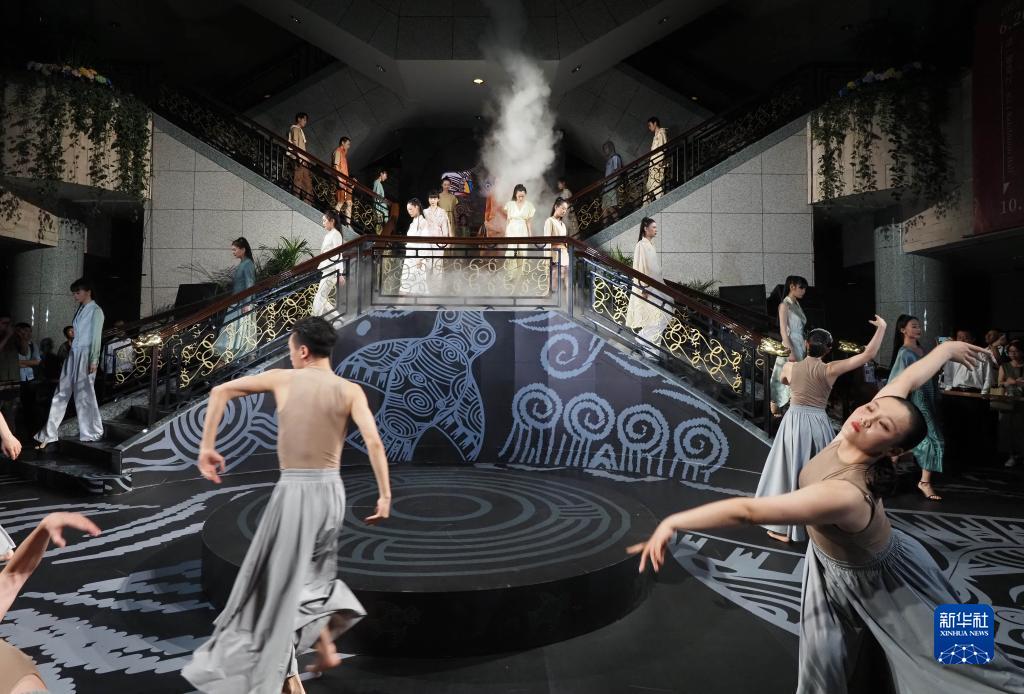 8月25日晚,演員在上博“研色·良渚之夜”綜合藝術(shù)秀上表演現代舞。新華社記者 任瓏 攝
