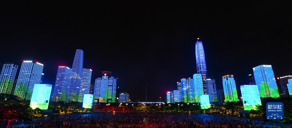 8月25日晚,深圳市中心區燈光表演慶祝特區成立43周年。新華社記者 梁旭 攝