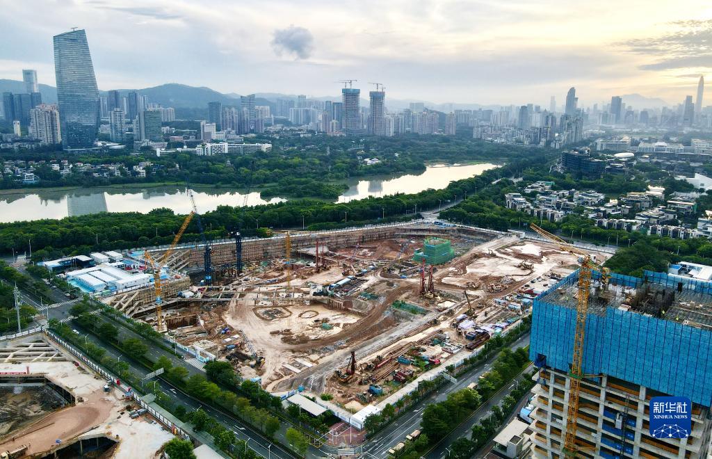 這是由中建五局承建的深圳灣濱海商務(wù)中心項目,現場(chǎng)150余名建設者在進(jìn)行地下室基坑和視覺(jué)樣板地上主體結構作業(yè)(8月26日攝)。