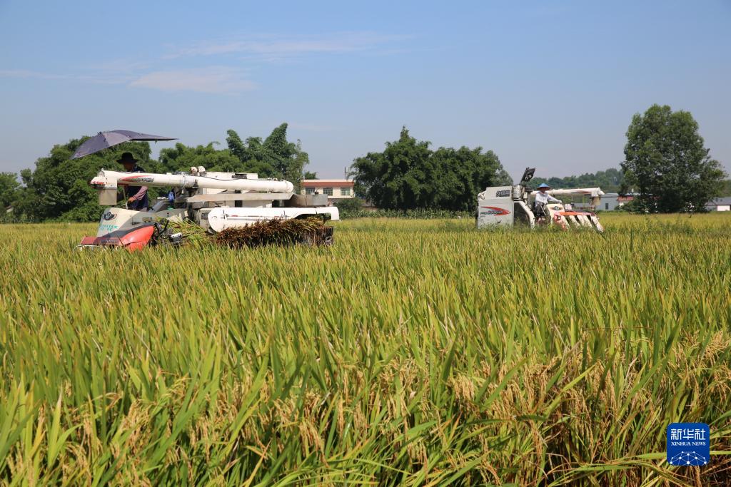 8月27日,在四川省眉山市東坡區太和鎮四維村,村民駕駛機械收割水稻。