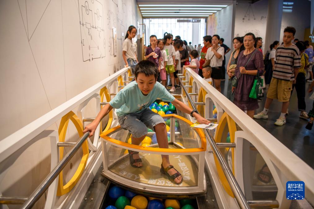 8月27日,小朋友在浙江省金華市金華之光文化廣場(chǎng)科技館里體驗科普項目。
