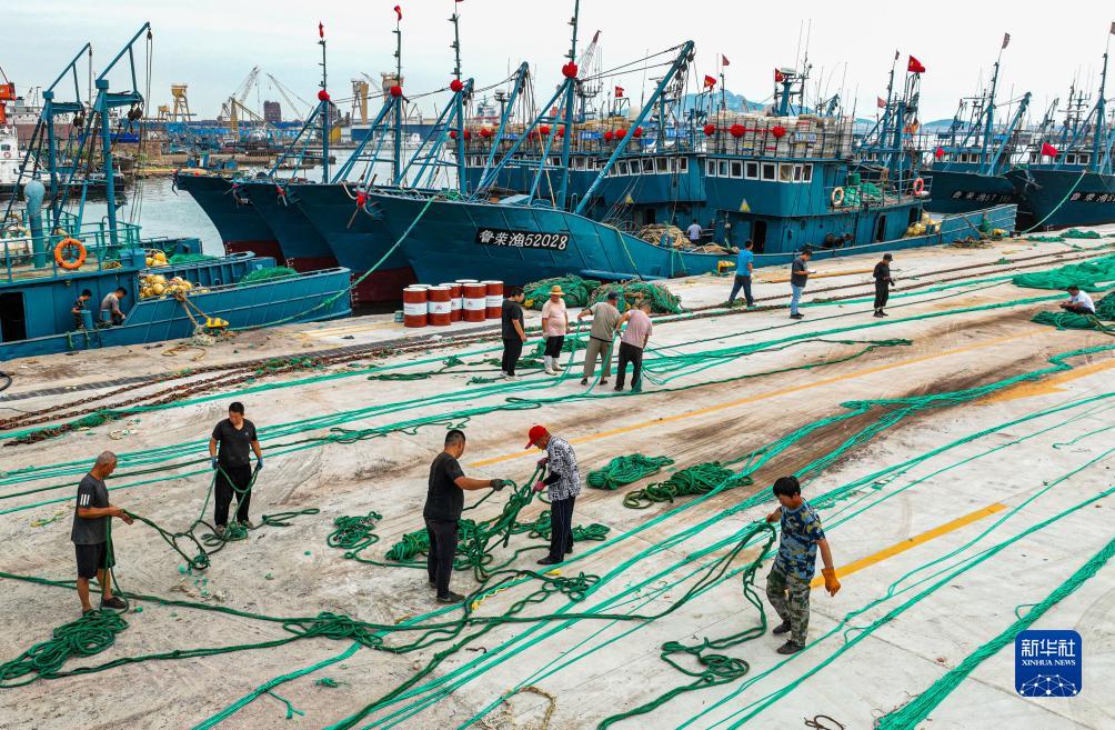 連日來(lái),在山東省榮成市石島漁港碼頭,漁民們忙著(zhù)檢修漁船、修補漁網(wǎng)、添置各種漁具、加油加冰,為開(kāi)海秋捕做準備。