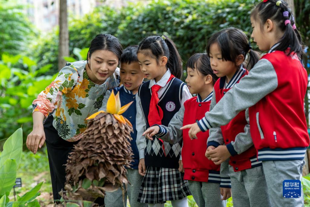 8月27日,云南省昆明市潤城學(xué)校的老師帶著(zhù)學(xué)生參觀(guān)生物多樣性科普宣傳示范基地。