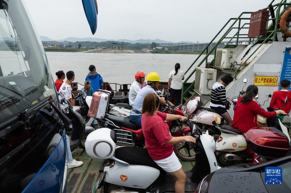 8月28日,車(chē)客渡船在岷江上運行。