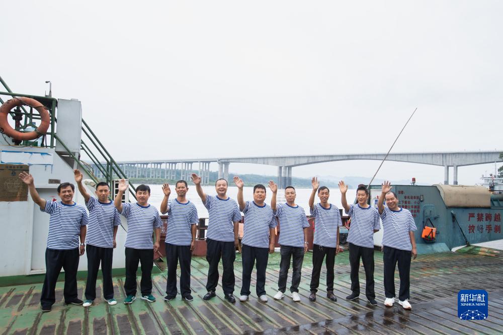 8月28日,車(chē)客渡輪的船員們在船上合影。