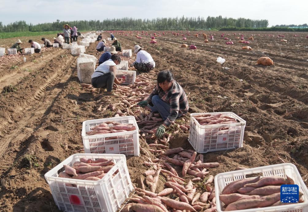 8月28日,灤州市九百戶(hù)鎮一家鮮食紅薯種植合作社的社員在田間收獲煙薯。