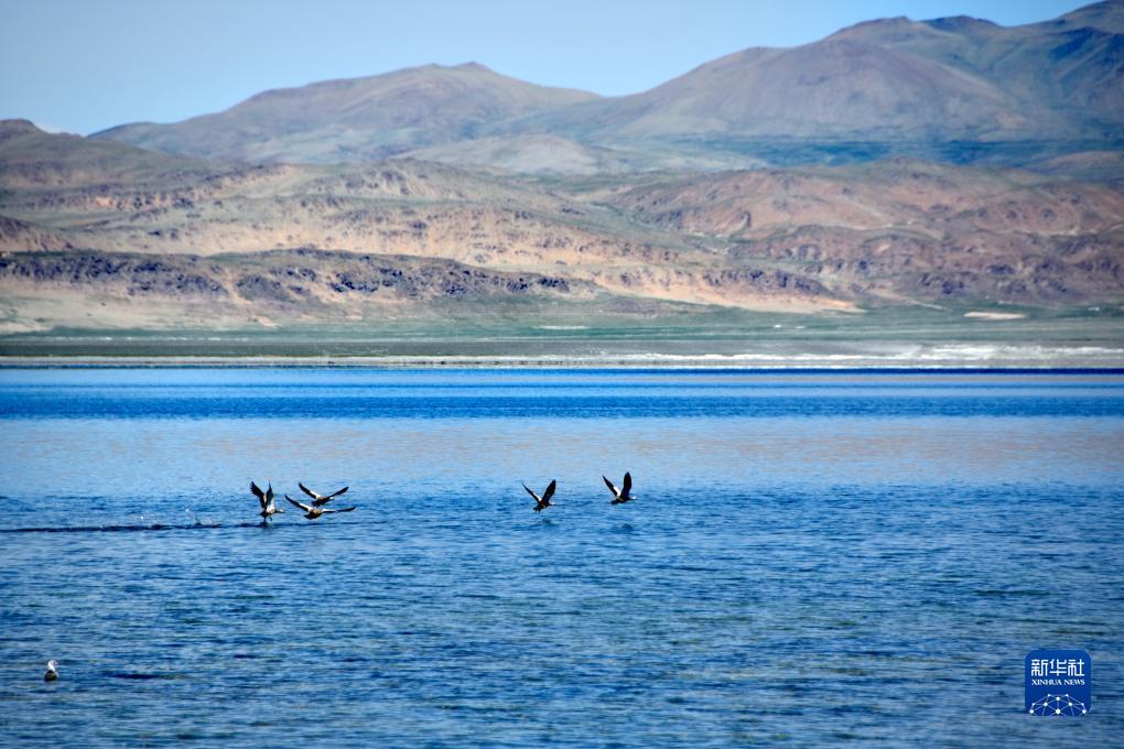 飛鳥(niǎo)從達瓦錯湖面掠過(guò)(8月28日攝)。