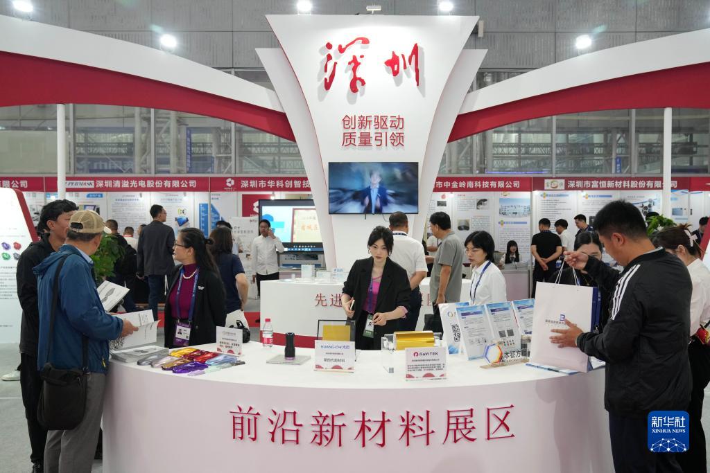 8月29日,參會(huì )者在前沿新材料展區了解情況。