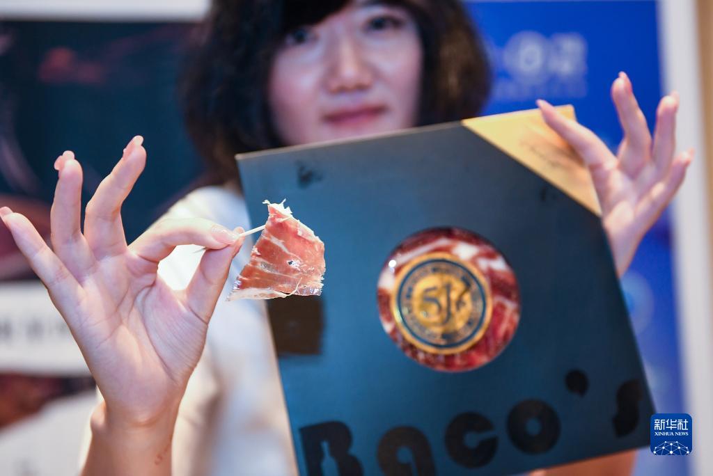 8月29日,在深圳舉行的進(jìn)博會(huì )展前供需對接活動(dòng)上,參展商展示伊比利亞火腿。