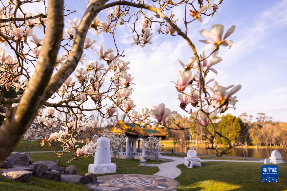 這是8月30日在澳大利亞堪培拉的北京花園拍攝的玉蘭花。