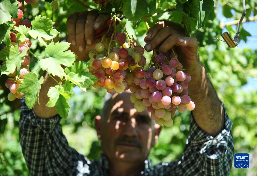 8月29日,在敘利亞大馬士革,農民收獲葡萄。