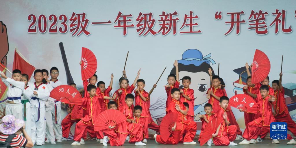 8月30日,??谑杏裆硨?shí)驗學(xué)校的武術(shù)隊在“開(kāi)筆禮”儀式活動(dòng)現場(chǎng)表演。