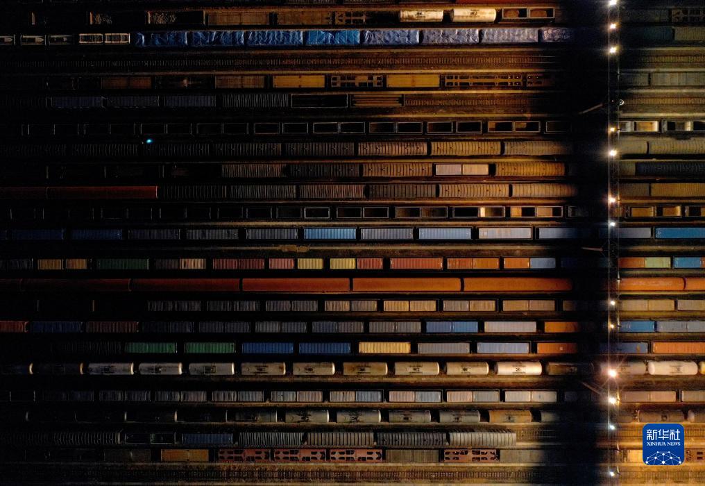 8月29日晚拍攝的投光燈照耀下的鄭州北站編組場(chǎng)(無(wú)人機照片)。