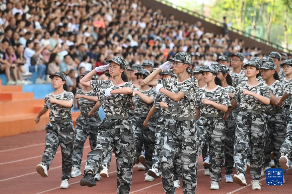 8月30日,四川省內江市第六中學(xué)新生在參加隊列會(huì )操。