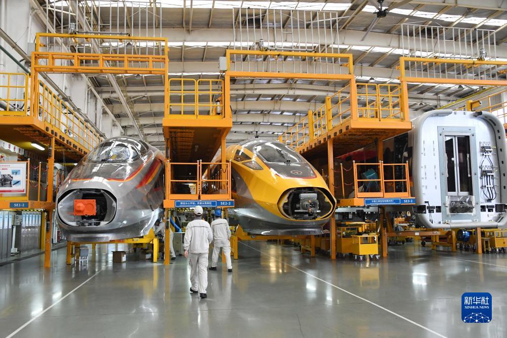 8月29日,中車(chē)青島四方總裝車(chē)間工作人員在復興號智能動(dòng)車(chē)組生產(chǎn)線(xiàn)上進(jìn)行裝配作業(yè)。